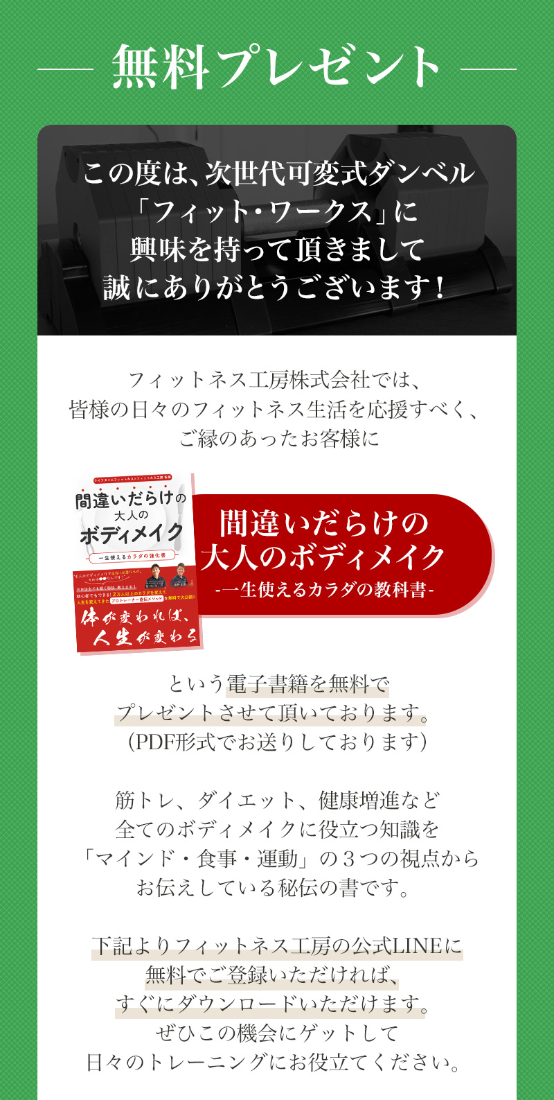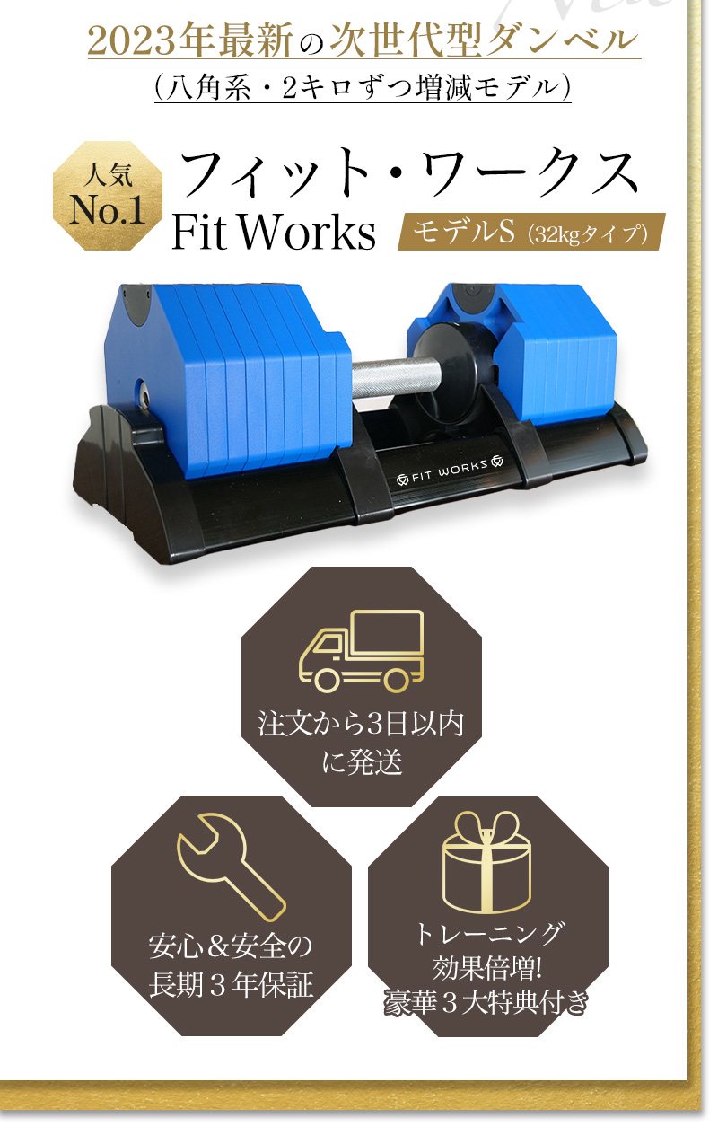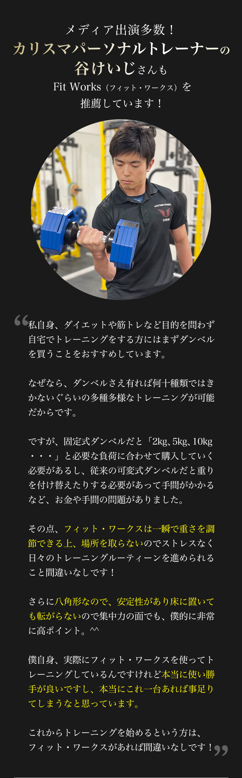 もちろん、最初に揃えるべき機器は可変式の次世代ダンベル「フィット・ワークス」で決まりです😊