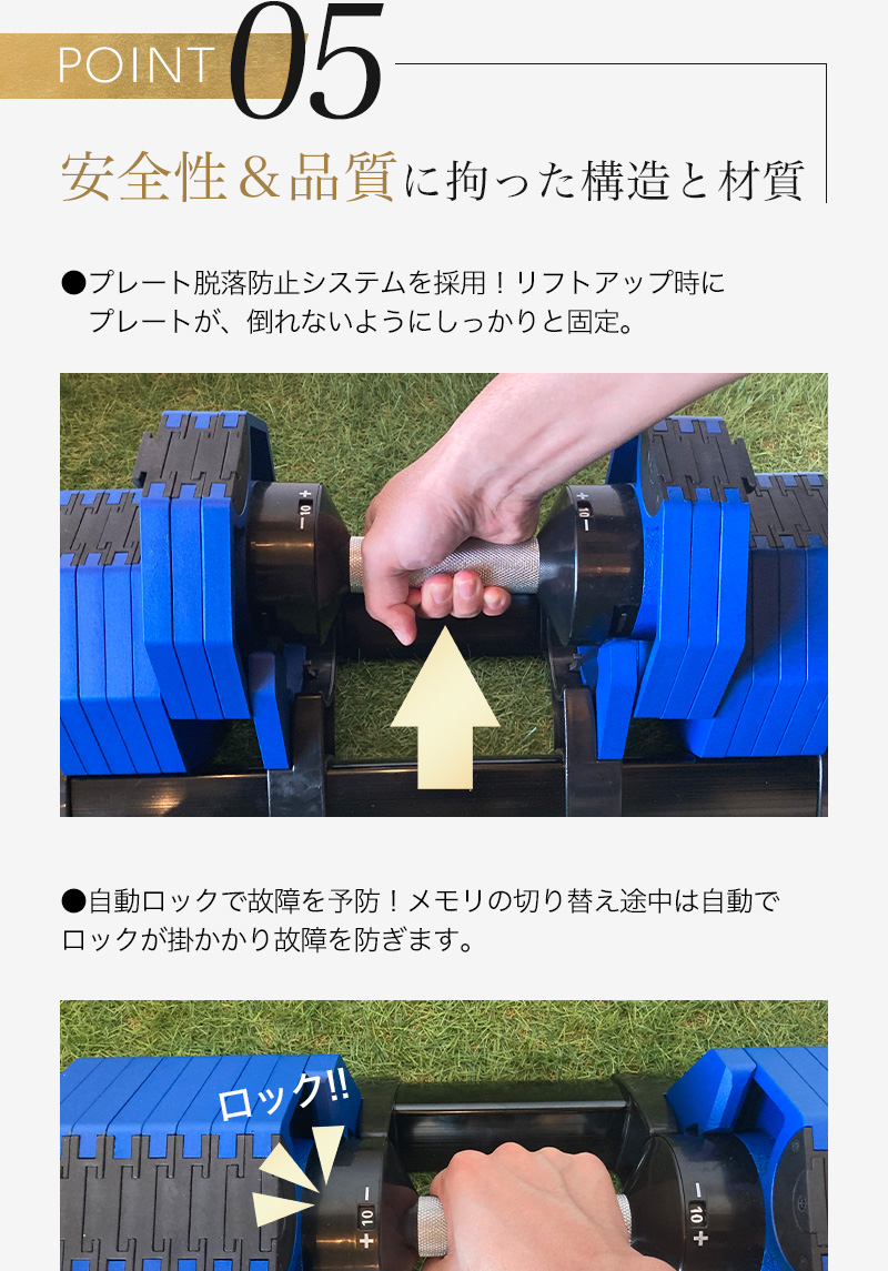 基本的な使い分けとしては、32kgのモデルSが最も人気でスタンダードなモデルです。最初は32kgまでは必要ないと思われる方でも、トレーニングをこなせば段々と重い重量もあげられるようになりますし、下半身系のトレーニングでは、重い重量が重宝されます(トレーニング動画も付属します)「大は小を兼ねる」と言いますが、可変式ダンベルに関しては、それが最も当てはまりますので、迷ったらモデルS(32kg)をおすすめします。女性やもう少し低負荷な重量をご希望の方は20kgのモデル1を、逆にもっとハードなトレーニングがしたい方やボディビルの大会などを目標にする方は、40kgのモデルXをおすすめしております。