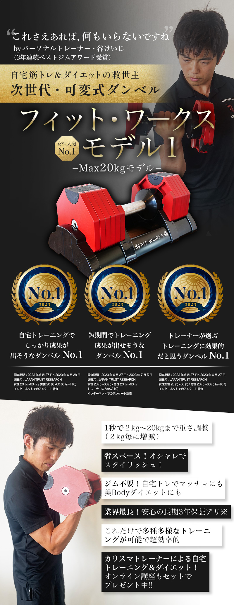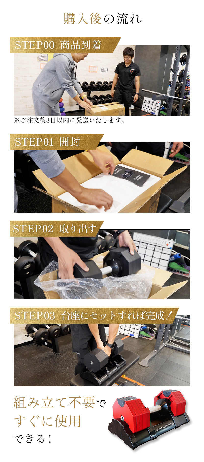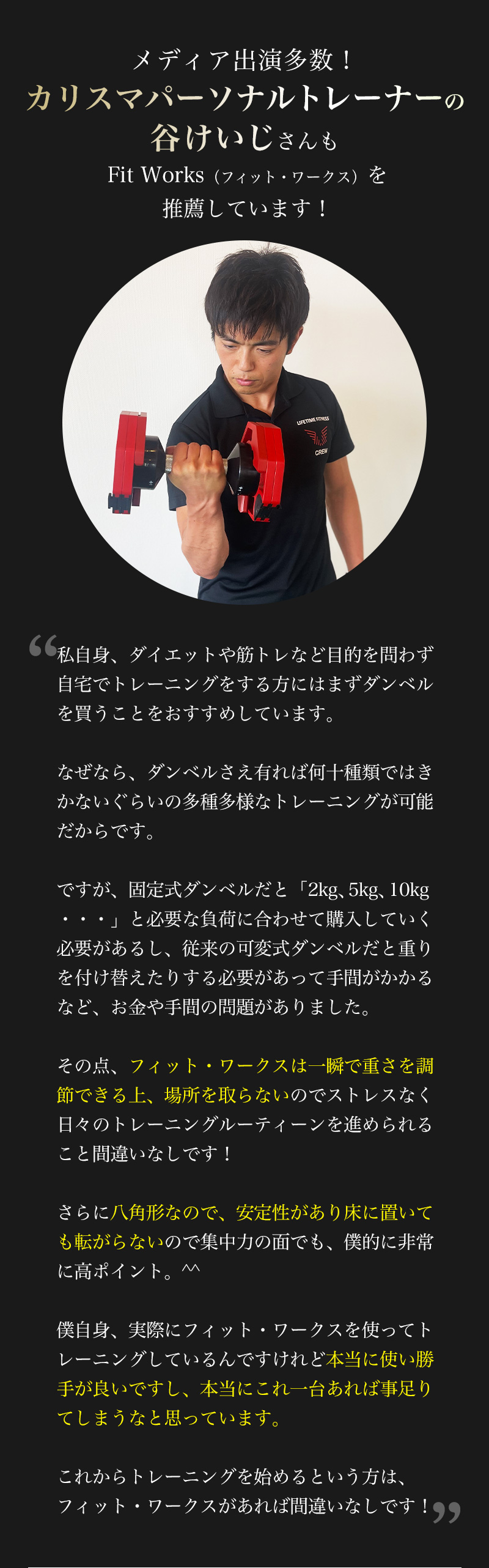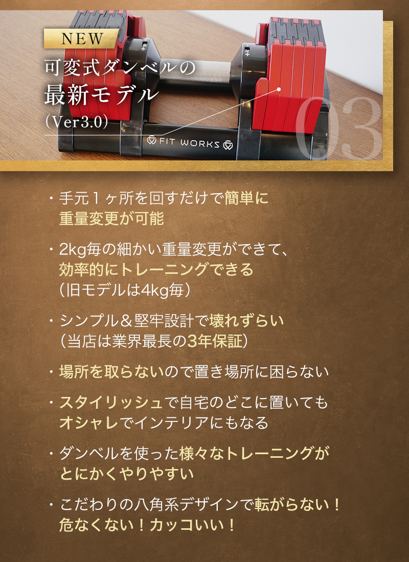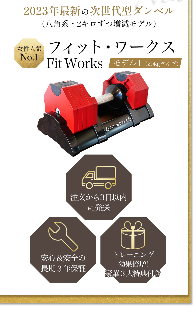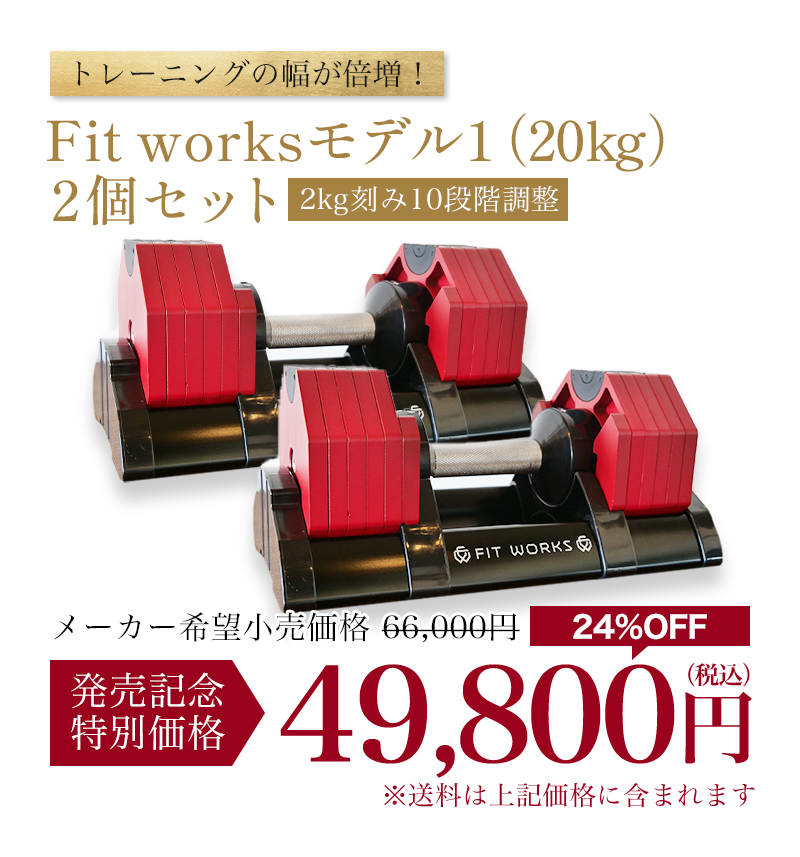 もちろん、最初に揃えるべき機器は可変式の次世代ダンベル「フィット・ワークス」で決まりです😊