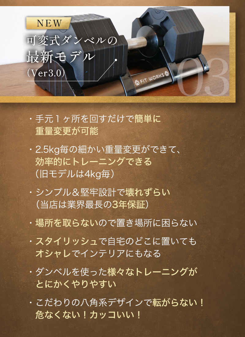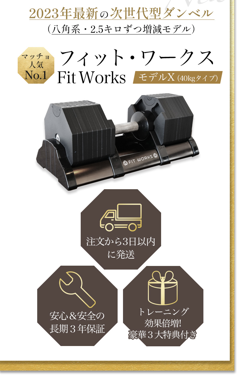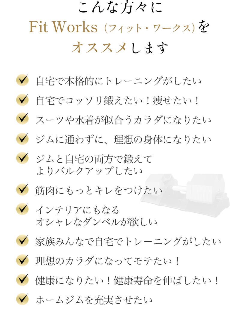 もちろん、最初に揃えるべき機器は可変式の次世代ダンベル「フィット・ワークス」で決まりです😊
