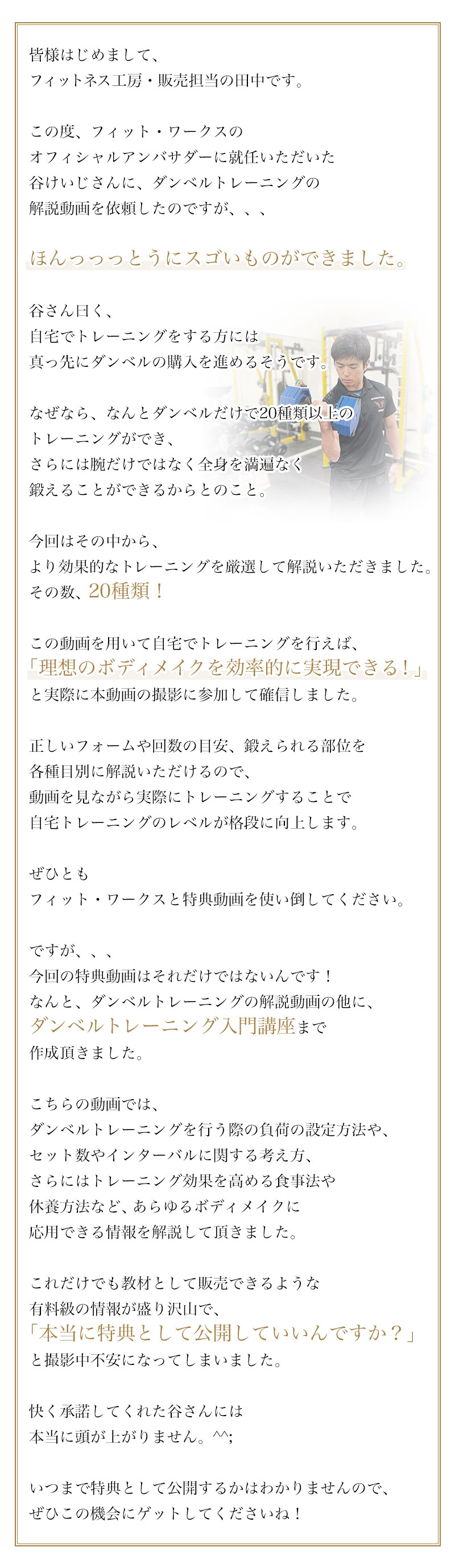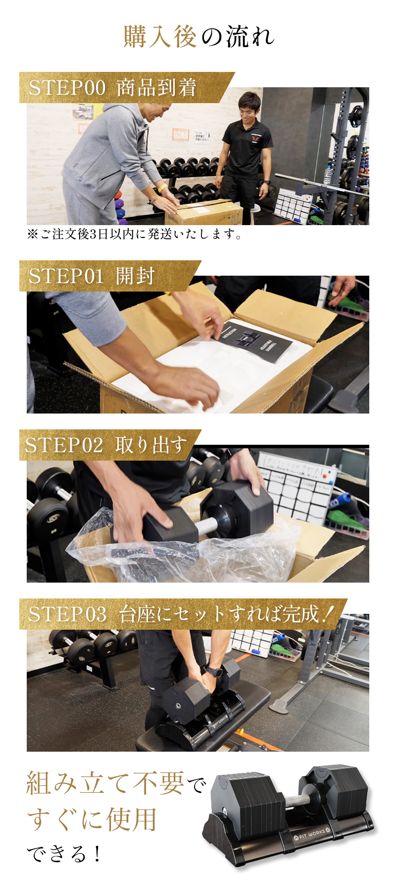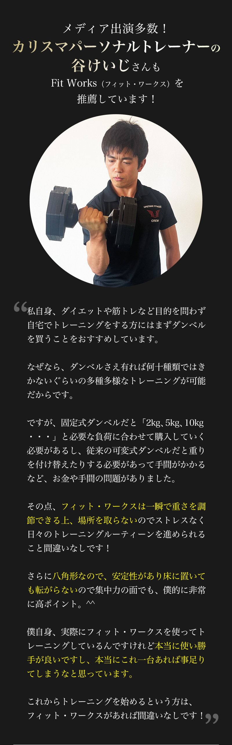 もちろん、最初に揃えるべき機器は可変式の次世代ダンベル「フィット・ワークス」で決まりです😊