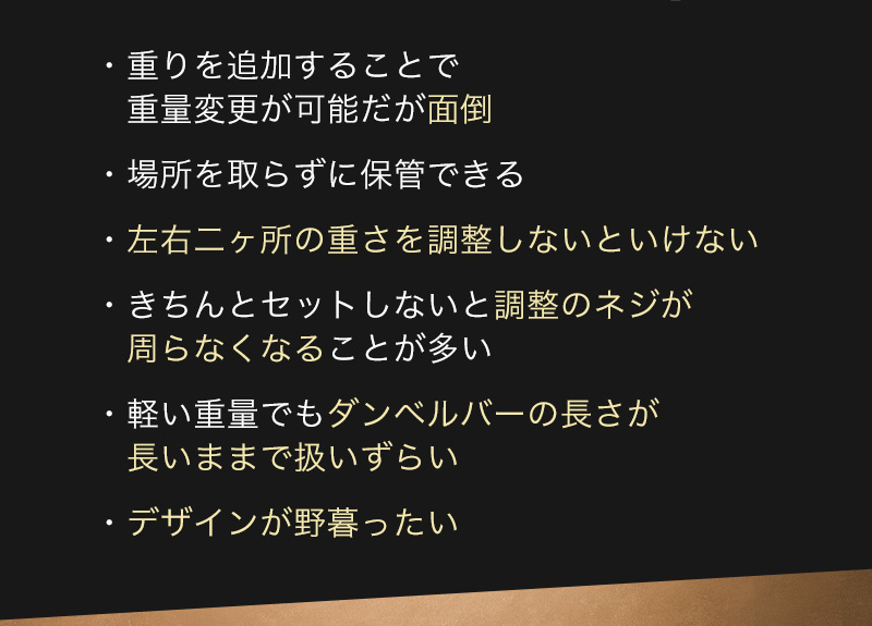 しかし、家庭用として最も汎用性が高く、満足度が高いのは、ひとつあれば、重さの調整ができる可変式タイプのダンベルになります。