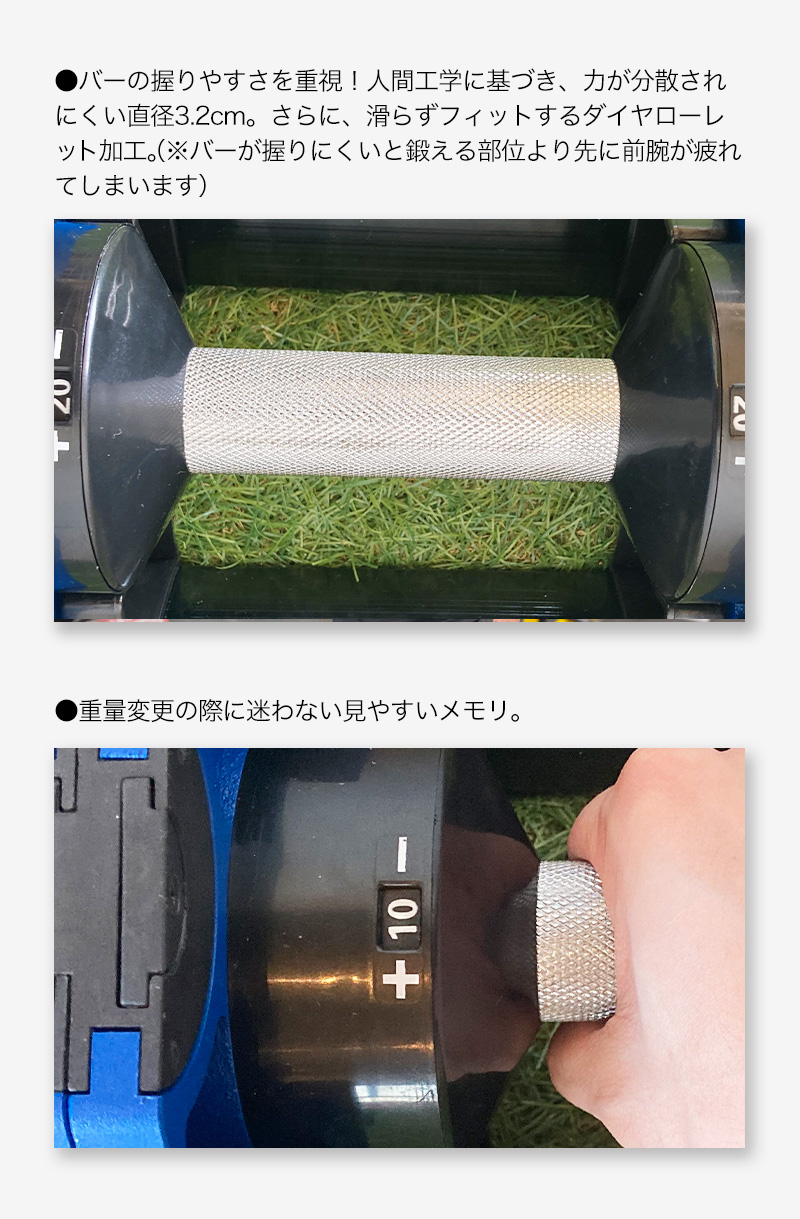 基本的な使い分けとしては、32kgのモデルSが最も人気でスタンダードなモデルです。最初は32kgまでは必要ないと思われる方でも、トレーニングをこなせば段々と重い重量もあげられるようになりますし、下半身系のトレーニングでは、重い重量が重宝されます(トレーニング動画も付属します)「大は小を兼ねる」と言いますが、可変式ダンベルに関しては、それが最も当てはまりますので、迷ったらモデルS(32kg)をおすすめします。女性やもう少し低負荷な重量をご希望の方は20kgのモデル1を、逆にもっとハードなトレーニングがしたい方やボディビルの大会などを目標にする方は、40kgのモデルXをおすすめしております。