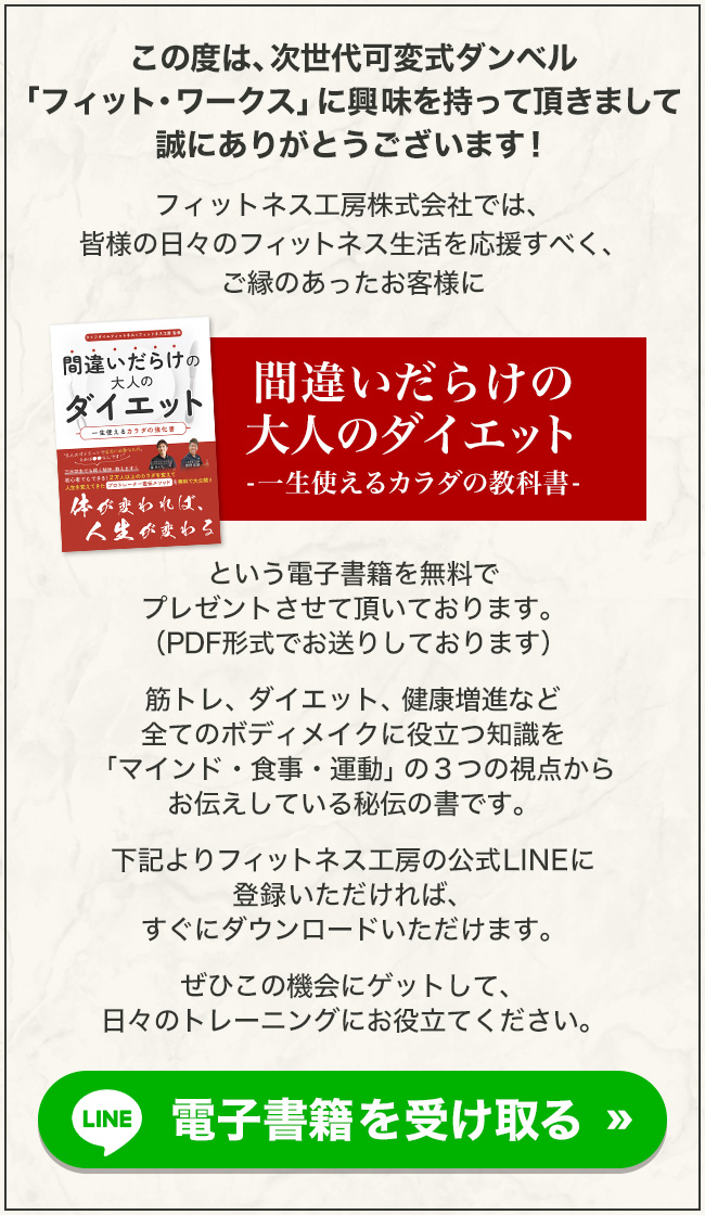 もちろん、最初に揃えるべき機器は可変式の次世代ダンベル「フィット・ワークス」で決まりです😊